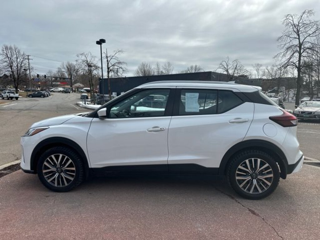 Aspen White Tricoat 2023 Nissan Kicks SV FWD CVT with Xtronic 31/36 City/Highway MPG 1.6L 4-Cylinder DOHC 16V